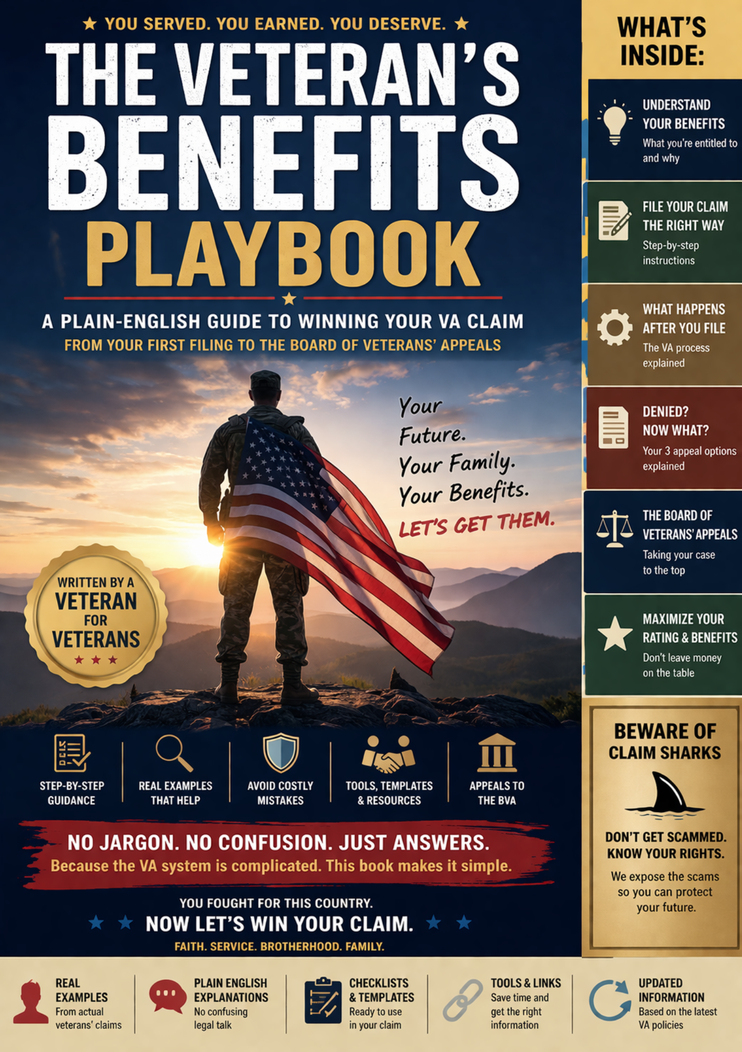 The Veteran’s Benefits Playbook is a plain-English, no-nonsense guide designed to help veterans understand, navigate, and WIN their VA disability claims.